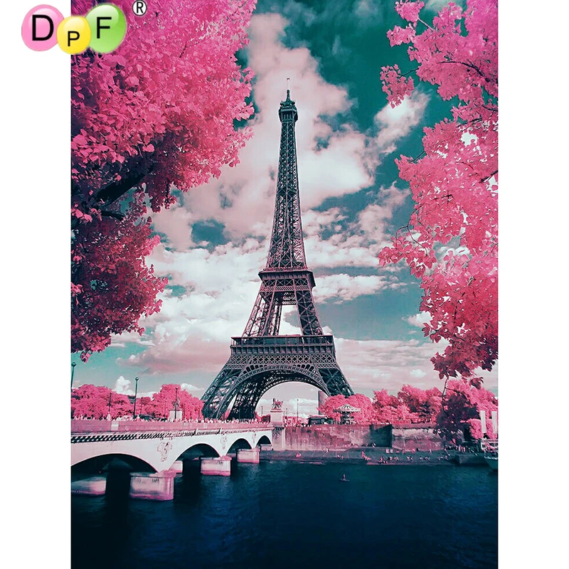 Dpf Diamond Embroidery The Pink Tree And The Eiffel Tower Handmade