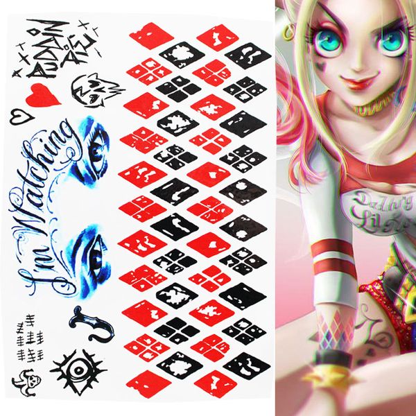 Waterproof Temporary Tattoo Sticker Suicide Squad Harley Quinn Joker Clown Fake Tatto Flash Tatoo For Men Girl Womem Femme Print Your Own Temporary